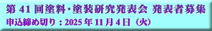 第41回塗料・塗装研究発表会 発表者募集のお知らせを掲載しました。